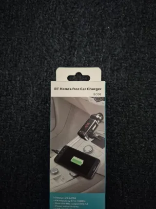 Dispositivo manos libres Bluetooth para coche con cargador. - Versión: V5.0+EDR - Frecuencia FM: 87.5-108Mhz - Doble USB Max. Salida: 5V/2.1A - Lámpara indicadora de encendido