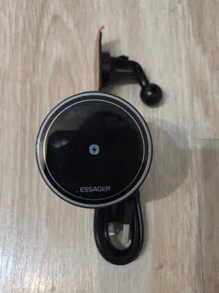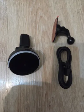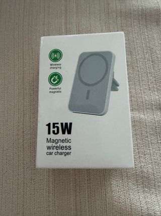 Cargador inalámbrico para coche, nuevo y en perfecto estado. Incluye cable USB tipo C y soporte. - Diseño elegante en color negro. - Soporte ajustable para el móvil. - Incluye accesorio para rejilla de ventilación y cable USB tipo C . -Nuevo en su caja.