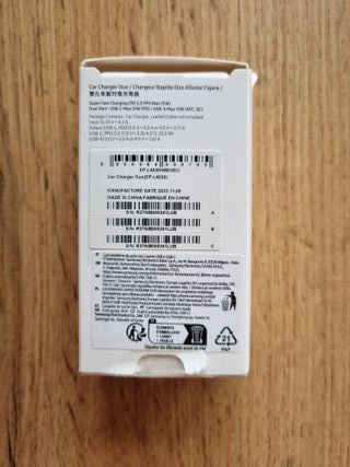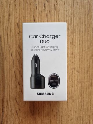 No negociable no cambio. Vendo cargador oficial de coche Samsung Duo con doble puerto para carga rápida como nuevo ,usado 1 vez. - Puerto 1: 25W - Puerto 2: 15W - Carga Super Fast Charging