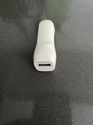 Adaptador de corriente para coche con puerto USB. - Conector para encendedor de cigarrillos. - Cable enrollado.