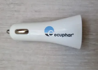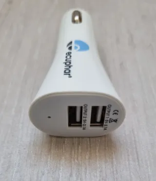 Cargador para el mechero del coche con dos puertos USB. Salida 1: 5V-2.1A Salida 2: 5V-2.1A Diseño compacto y elegante.cargador de coche USB de la marca ecuphar. Compatible con smartphones y tabletas.