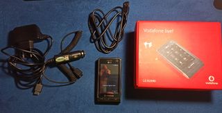 LG KU990 Vodafone en su caja con cargador, cable de datos y cargador de mechero para coche, bien conservado y funcionando.