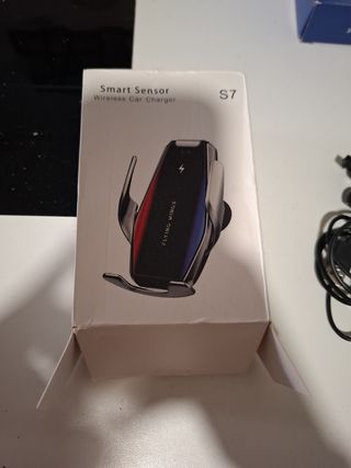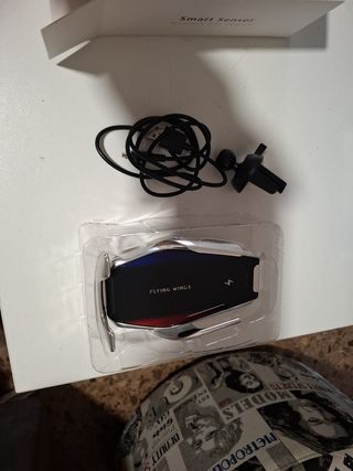 Soporte inalámbrico para coche, con sensor inteligente. Está en perfecto estado. - Carga inalámbrica para tu móvil. - Diseño elegante y moderno en color amarillo. - Incluye cable USB para la conexión.