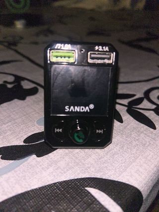 En venta, cargador de coche SANDA con Bluetooth. Está en buenas condiciones. - Conexión Bluetooth. - 2 puertos USB. - Diseño compacto y elegante. - manos libres - cargador rapido - reproduce musica