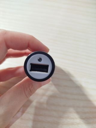 Cargador de coche con puerto USB de la marca Tomtom. Permite cargar dispositivos a través de su puerto USB. Se conecta a la toma del encendedor de cigarrillos del coche. Está en buen estado.