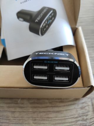 Se vende cargador de coche con 4 puertos USB para cargar diferentes aparatos electrónicos. Móvil, tablet, etc. Carga rápida 3.0 Nuevo a estrenar. Solo abierto para hacer las fotografías. Dispongo de 2 unidades. El precio marcado es por unidad. Sólo gente seria y formal por favor. Gracias