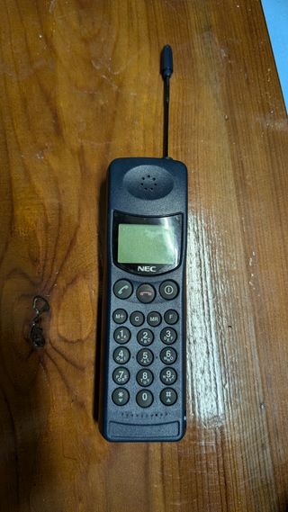 Teléfono móvil vintage de la marca NEC. Se incluye batería, cargador de coche y funda.