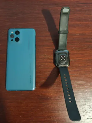 Pack de teléfono móvil y smartwatch. - OPPO Find X3 Pro. - OPPO Watch 46mm. - Cargador rápido. Móvil OPPO Find X3 Pro (256GB/12GB RAM): Un gama alta con pantalla 2K de 120Hz y cámara microscopio. El cristal trasero está perfecto. Nota: La batería tiene desgaste por el uso, por eso el precio es tan bajo, pero el teléfono funciona de maravilla.(El protector tiene una marquita de uso, pero la pantalla debajo está como nueva). OPPO Watch 46mm: El modelo más grande con pantalla curva AMOLED.(Lleva un protector puesto practicamente nuevo). Carga SuperVOOC: Incluyo el cargador de carga original y un cable USB-C nuevo.