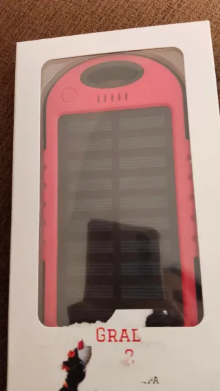 Un regalo nunca usado. Batería externa con panel solar integrado, ideal para cargar dispositivos en movimiento. Su diseño es compacto y llamativo. - Panel solar para recarga. - Carcasa resistente.