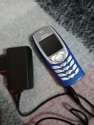 Teléfono móvil antiguo para coleccionistas. Azul. Con su cargador original. No tiene batería, de ahí su precio.