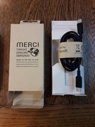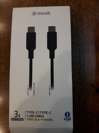 Este cable para carga y transferencia de datos Muvit con conector USB Tipo C de velocidad 3A, 1,2 metros de longitud, en color negro y 100% reciclable. Recarga la batería de tu smartphone y transfiere datos entre dispositivos electrónicos mediante el nuevo cable Muvit de carga y sincronización Tipo C con conector USB Tipo C. Nuevo, sin usar, en su embalaje original. El embalaje está abierto. Comprado por error.