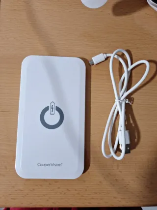 Cargador inalámbrico de CooperVision con un diseño moderno y elegante. Nunca usado - Indicador de carga con símbolo de batería. - Incluye cable de carga.