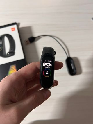 Pulsera de actividad Xiaomi Mi Band 4 en color negro. Incluye su caja y cargador. - Pantalla a color. - Resistente al agua 5 ATM. - Batería de larga duración.