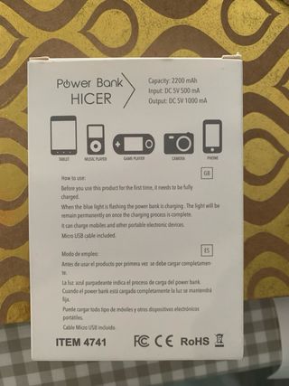 bateria o cargador portatil totalmente nuevo, ni se ha sacado de la caja