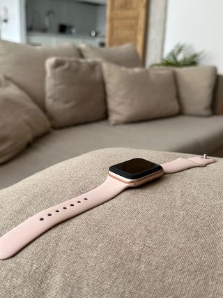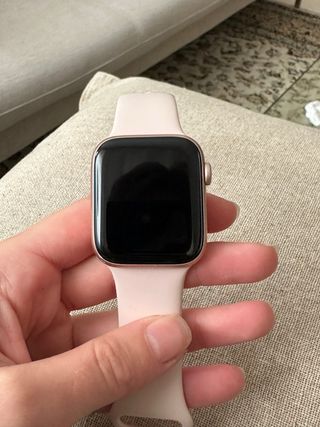 Vendo Apple Watch Series 5 de 40 mm en muy buen estado de uso. Funciona perfectamente y en las fotos se puede ver su estado real. Tiene algún pequeño roce superficial propio del uso, que no se ve en la pantalla cuando esta encendida y que no afecta en nada al funcionamiento. Lo vendo porque me han regalado otro. Incluye: Correa original rosa, Pieza extra de correa para distintas tallas, Cargador original en perfecto estado. El porcentaje de salud de batería es del 70% pero aguanta un día completo con uso normal, incluyendo entrenos, sin necesidad de cargarlo a mitad del día. Escribeme si tienes alguna duda!