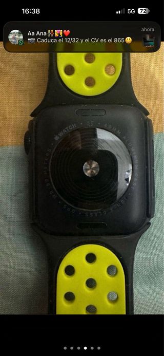 Caja y cargador incluidos Vendo Apple Watch Series 6 (GPS). Funciona perfectamente, sin fallos. Características: • Modelo: Apple Watch Series 6 (GPS) • Tamaño: 40 mm • Color: Rosa / Rose Gold • Almacenamiento: 32 GB • watchOS: 11.6.1 Incluye: • ✔ Caja original • ✔ Cargador original • ✔ Correa deportiva rosa original Estado: • Buen estado general • Pantalla en buen estado (ver fotos) • Pequeñas marcas normales de uso en la carcasa • Batería funciona bien para uso diario Se vende por falta de uso. Perfecto para deporte, salud, no