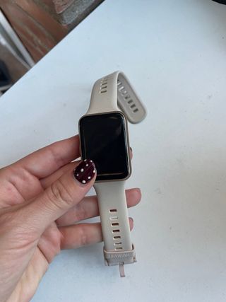 Elegante reloj Huawei con correa en tono beige y detalles dorados. - Diseño moderno y ligero. - Correa ajustable. No tiene batería no tengo cargador