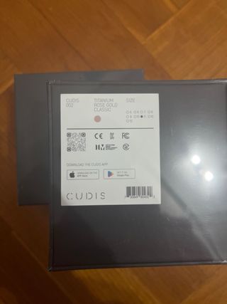 Anillo inteligente Cudis modelo 002, en acabado Titanium Rose Gold y estilo Classic, con su cargador inalámbrico. El Cudis AI Ring 002 (talla 11 y talla 12 - tengo dos, a 200€ cada uno) es un anillo inteligente de titanio diseñado para monitorizar tu bienestar las 24 horas. Registra sueño, ritmo cardíaco, actividad y recuperación con gran precisión. Es ligero, resistente al agua y ofrece hasta 10 días de batería. No requiere suscripción y se integra con su app para ofrecer métricas de salud claras y personalizadas mediante IA.