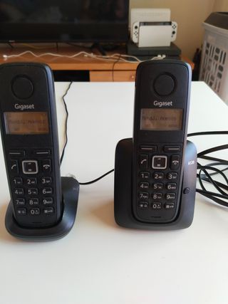 Teléfonos Gigaset A120 duo como nuevos perfectos con su cable conexión línea teléfono fijo y sus cargadores con bases y las baterías recargables 10 euros los dos