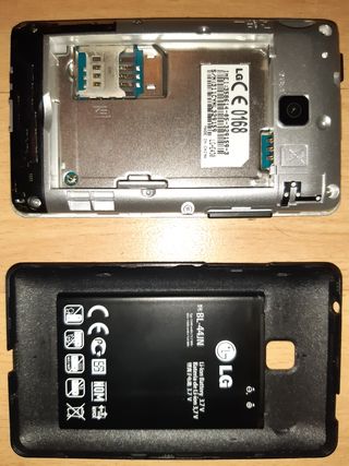 Smartphone LG E430 .... con bateria original ...... no tiene cargador original, el telefono enciende carga pero al quitarlo de cargar sé apaga al rato porqué la batería no aguanta necesita una nueva. Lleva ranura para MicroSD. ____Trato en mano____