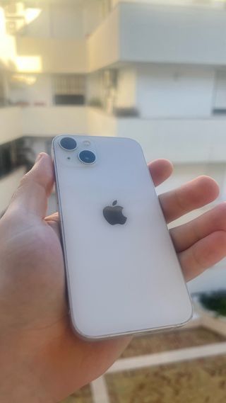 Teléfono móvil iPhone 13 en color blanco. Muy buen estado, todo original y todo funciona sin fallos. Se entrega con caja original y cargador. 83% batería, dura todo el día