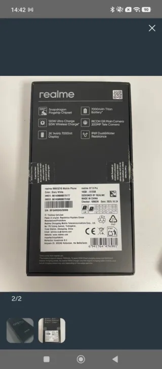 Teléfono móvil Realme GT8 Pro. Color Blanco, 512 GB. Última Tecnología. 200 Megapixeles. Cámara Kodak. 7000 Batería. Incluye; - Protector de Pantalla. - Funda Protectora. - Cargador Original. - Modelo GT8 Pro, 5G. - Cámara potenciada por RICOH GR. - Diseño elegante y ligero. - Versión Asiática, Pasada a Versión Europea y Estadounidense, (Español). Sin problema alguno, Comprobado. - Tiene sus códigos para comprobarlo perfectamente y verificarlo.