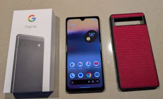 Google Pixel 6a , Caja y Funda Roja