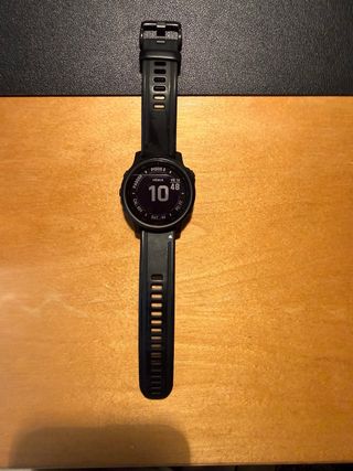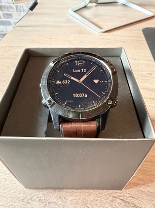 Reloj deportivo Garmin Fenix 6S Pro con acabado en zafiro y correa negra. - Pantalla de alta resolución. - Diseño robusto y elegante. - Ideal para actividades al aire libre. - No es pantalla Amoled ni oled - Reloj con 6 años de uso, funcionando perfectamente, batería con su correspondiente desgaste - Usado sobretodo para corree y gimnasio - Edición S (42mm) con cristal de Zafiro - Pequeñas marcas de uso - Correa original, con poco desgaste (se ha usado otra correa durante el 95% del tiempo de uso) - No se entrega el cargador original ya que dejó de funcionar. Se puede entregar con uno de base si se quiere