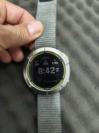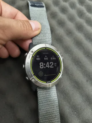 Reloj deportivo Garmin Enduro con carga solar. Con autonomía de 50 días sin luz solar y con días soleados puede durar hasta 65 días. Vendo solamente el reloj sin cargador por qué lo voy a usar con otro Garmin. Tiene una leve señal en la pantalla (3ra foto) - Bisel de acero inoxidable. - Correa de nylon gris. - Pantalla con protección Gorilla Glass.