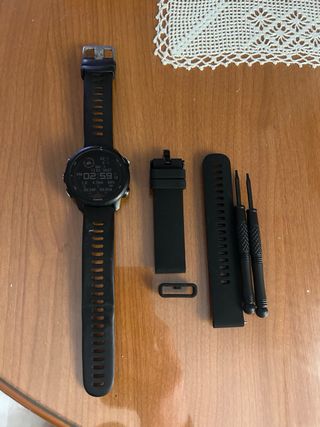 Reloj en condiciones óptimas de funcionamiento y de batería. Físicamente esta como el primer día, siempre con protector de pantalla. Las marcasque se ven en la foto son en el cristal templado NO son en la pantalla. Se ha usado solo al hacer la actividad. Poco uso. UNICO DUEÑO. Se entrega con: - Caja y factura de compra. - Otro protector de pantalla - Cargador - Correas adicionales (opcional) Motivo de venta, compra de modelo superior.
