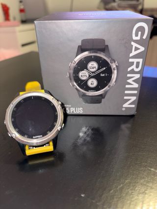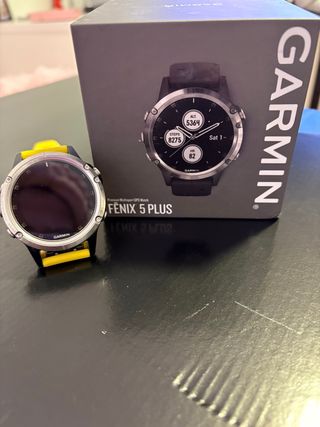 Reloj deportivo Garmin Fenix 5 Plus con correa intercambiable. - Bisel y caja de acero inoxidable. - Correa de silicona amarilla. - Pantalla a color. - Sin cargador Con poco uso (precio negociable)