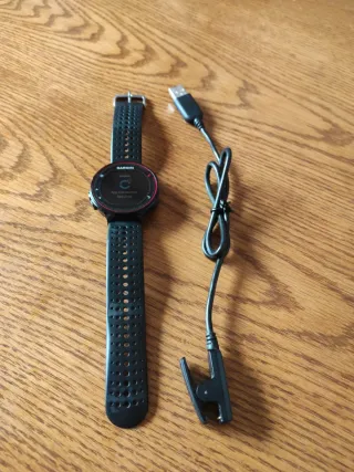 Descripción: Vendo mi Garmin 245. Funciona de lujo, el GPS conecta rápido y la batería sigue aguantando muy bien los entrenos. Está bien cuidado y lo entrego con cargador y su caja original. El único desgaste que tiene es que una de las separaciones entre dos muescas de la pulera se ha soltado (ver foto). Es probable que no te afecte, pero si no, hay correas nuevas en amazon por 8€. He ajustado el precio para tener eso en cuenta. No envio, estoy en Barcelona, Poblenou. ⚠️ PRECIO NO NEGOCIABLE. Lo he puesto ya ajustado para venderlo rápido. Por favor, no ofertas ni cambios, gracias.