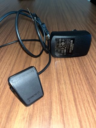 Vendo cargador para reloj Garmin Forerunner. Está en buen estado y se incluye el cable de carga. - Perfecto para cargar tu reloj Garmin. - Incluye cargador y cable USB. - El cargador está en excelentes condiciones.