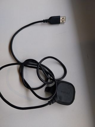 Cargador y cable con USB marca Garmin. Lo compré para un reloj Garmin Forerunner. Incluyo ambas cosas en el precio. Está nuevo.