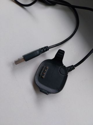 Cable de carga para relojes Garmin Forerunner. 1 metro de longitud. - Conector USB estándar. - Clip de sujeción para el reloj.