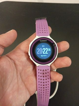 Reloj deportivo Garmin Forerunner 245 con correa. Incluye cargador Siempre usado con protector por lo que el vidrio no tiene rayafuaras Vendo por falta de uso - Color: Morado - Modelo: 245