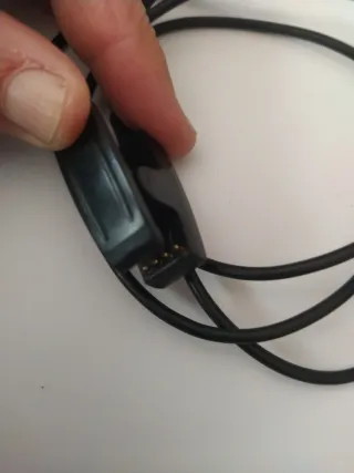 Pulsera de actividad Garmin VivoSmart HR+. Funciona perfectamente. La correa está un poco desgastada. Con 3 cables de cargador