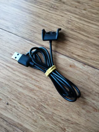 Cable de carga USB para Garmin Vivosmart 4. - Conector USB estándar. - Pinza de sujeción para el dispositivo.