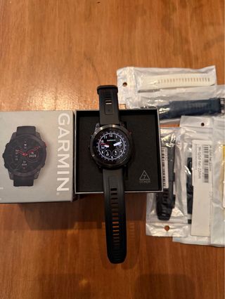 Reloj deportivo de alta gama con un diseño elegante y robusto. Modelo titanio y zafiro de 47mm, usado durante 1 año, la corona del reloj presenta pequeños arañazos dado su uso, pantalla en perfectas condiciones (siempre se ha usado con cristal templado), se vende por cambio a uno mas actual. Se entrega con cargador y correa, sin caja.