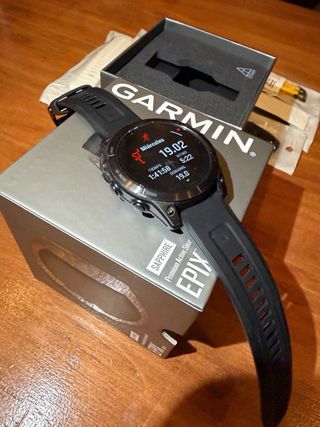 Vendo Garmin Epix (Gen 2) edición Zafiro 47 mm, en buen estado con pequeñas marcas en el bisel del uso. Pantalla como nueva. Funciona perfectamente: GPS, sensores y pantalla AMOLED en perfecto estado. Incluye cargador original y caja. OPORTUNIDAD. Precio nuevo 900€