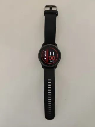 Garmin Venu 2 en color negro. Funciona perfectamente. Tiene algunos arañazos superficiales en la pantalla que no se ven cuando está encendido. Se entrega en su caja original con el cable cargador y una correa de recambio.