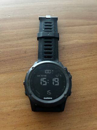 Smartwatch / reloj deportivo Garmin Fēnix 5 con GPS + GLONASS y sensor de frecuencia cardíaca en muñeca. Ideal para running, trail, montaña, gimnasio, ciclismo, natación o triatlón. Resistente al agua 100m y batería de larga duración. Funciona perfectamente. Incluye cargador y correa negra compatible (no original). Leves marcas normales de uso (ver fotos), no afecta al funcionamiento.