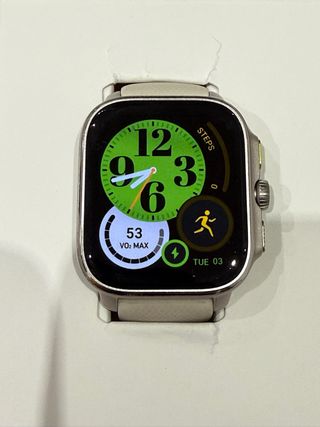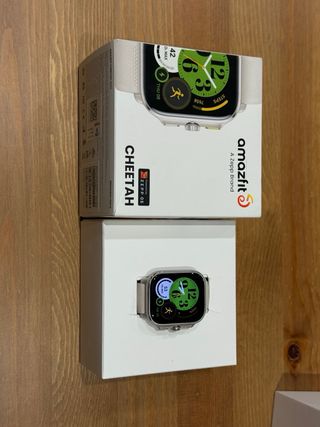 Reloj inteligente Amazfit Cheetah Square 44mm como nuevo. Hasta 14 dias de bateria, cable cargador y caja incluidos. Comprado en octubre como regalo sin apenas uso. Útil para carrera, muchas metricas y posibilidad de programar los entrenamientos desde el movil con plantillas de intervalos por tiempo distancia etc, muchas posibilidades y deportes. Usado también para natación y perfecto, coge hasta él estilo y lo mismo de las plantillas. Nada que envidiar a un Garmin - Correa blanca cómoda. - Corona giratoria en verde - Dos botones mas y tactil - Bisel plateado.