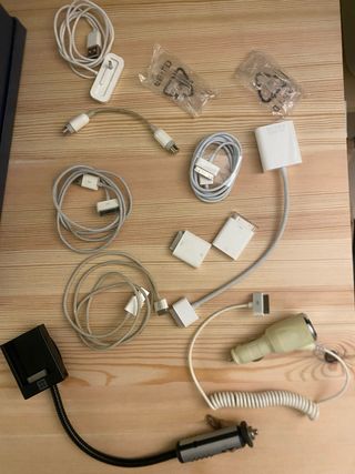 Lote de accesorios para iPad y otros dispositivos. - Cable USB x ipad. - Cable de video Apple x Ipad. - Base para iPad. - Lector de targueta. - cargador de coche. Gracias.