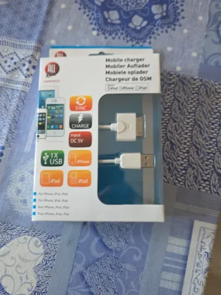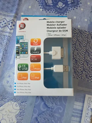 Incluye adaptador para pared (enchufe europeo), adaptador coche (encendedor) y cable de carga y datos con conector de 30 pines. La salida es de 1 A (amperio). Compatible con iPad iPhone Apple Hago envíos combinados, puedes mirar mi perfil y si te interesan más cosas lo hacemos en un solo envío