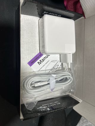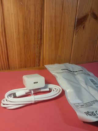 Cargador blanco para dispositivos Apple, Samsung,etc - Incluye cable USB-C de 2 metros de longitud. Cable bastante resistente. - Compatible con iPhone, iPad y otros dispositivos Apple. Carga muy rápida, dependiendo del dispositivo entre 1-1:40 horas. Hay posibilidad de hacer entrega en algunos sitios de alrededor No es Apple original pero funciona rápido y perfectamente.