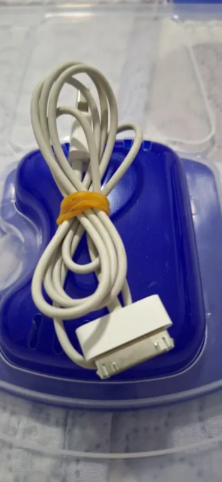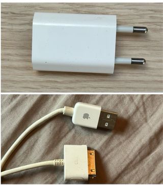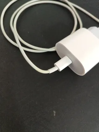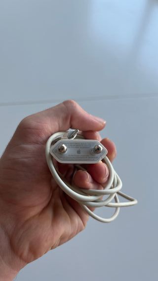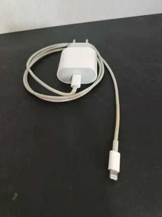 Cargador Apple original con cable Lightning en buen estado. Funciona correctamente, aunque presenta desgaste en las clavijas. Ideal para cargar y sincronizar dispositivos Apple de manera segura. Precio original: 50€. Tags: cargador apple original, cargador lightning, cargador iPhone, cargador iPad, cargador usado, cargador funcional, cable lightning apple, cargador oficial apple, cargador con cable, cargador blanco, accesorio apple, cargador fiable, cargador material resistente, cargador tecnología, cargador dispositivo apple, cargador estado correcto, cargador funcionando, cable apple original, cargador sincronización, cargador s