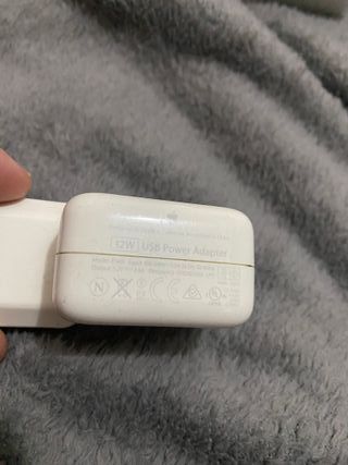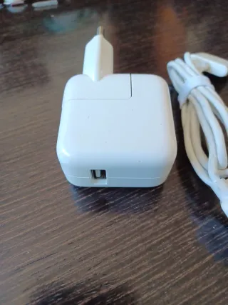 Vendo adaptador de corriente USB de 12W original de Apple. Es un cargador muy fiable y más potente que el estándar, ideal para cargar iPad y iPhone de forma eficiente. Detalles del producto: Potencia: 12W (conector USB-A tradicional). Estado: Usado pero en perfecto estado de funcionamiento. Cuerpo sólido y sin daños. Compatibilidad: Funciona con todos los modelos de iPad, iPhone (usando cable Lightning o de 30 pines) y Apple Watch. Ventaja: Al ser original de Apple, garantiza una carga segura sin dañar la salud de la batería de tus dispositivos.