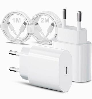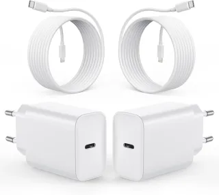 Kit completo de carga rápida para iPhone y iPad. Las fotos son de Amazon para enseñar el producto, pero esta nuevo sin estrenar. ✅ Carga Ultra Rápida: 20W de potencia (carga el 60% en solo 30 min). 3 veces más rápido que el original básico. ✅ Pack Doble: Incluye 2 adaptadores USB-C y 2 cables (uno de 1 metro y otro de 2 metros). ✅ Máxima Seguridad: Chip inteligente que protege contra sobrecalentamiento y sobrecarga. ✅ Compatibilidad: Ideal para iPhone 14, 13, 12, 11, SE, XR, X, 8 y modelos de iPad. ¡Nuevos, precintados y listos para usar! 📦
