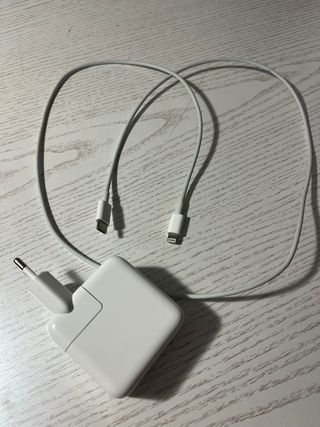 Vendo cargador Apple de 96W usado un par de veces. Válido para MacBook, iPad y iPhone es de carga rápida. Viene con más cabezas de enchufe. Cable para elegir Lightning o USB-C.